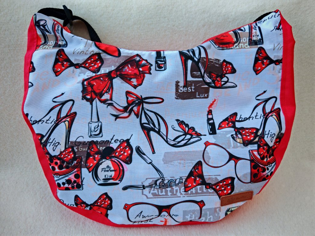 Uvnitř malá kapsa, v zadní části kapsa na zip.