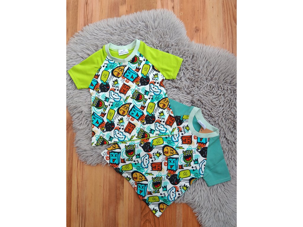 Tričko s krátkým rukávem - výbušné příšerky (zelená)